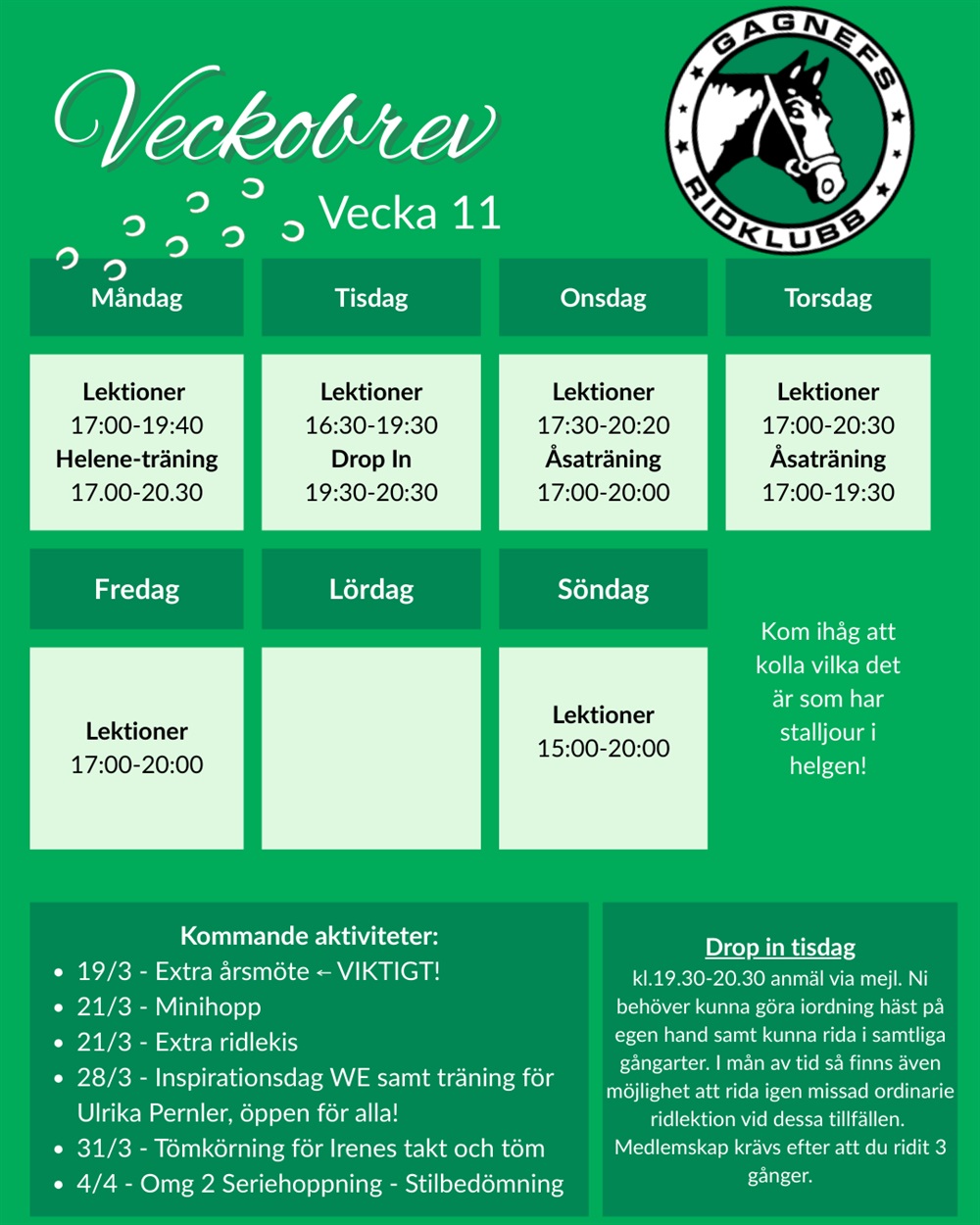 💚Varmt välkomna till Gagnefs Ridklubb v14💚